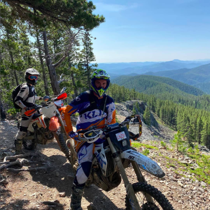 In the spring, summer, and fall, he rides his Husky FC450 on back-country trails and his e-bike through the foothills. During the winter, he has has taken a snowbike up into the mountains and studded up his tires to dirt bike across ice-covered lakes.